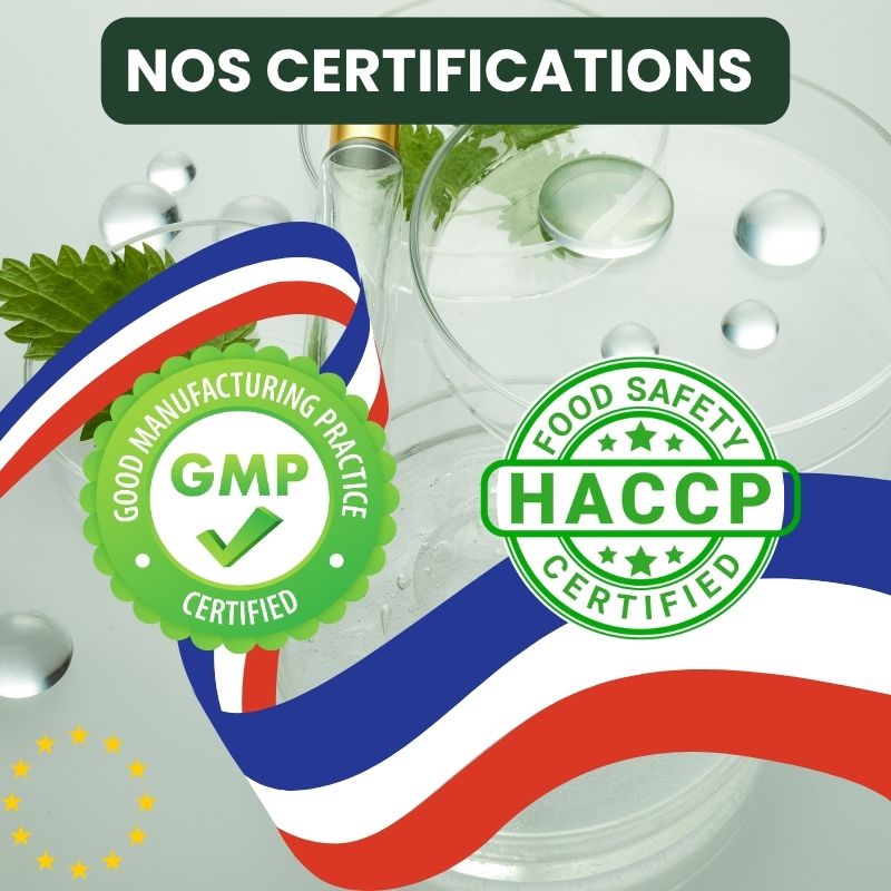 Nos compléments sont fabriqués en laboratoires certifiés, dans le respect des normes françaises et européennes les plus strictes.